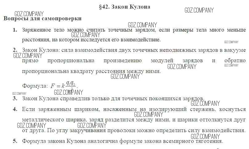 Здесь готовые ответы по Физике за 8 (восьмой) класс от Пурышева, Важеевская Учебник Вертикаль (издательство: Дрофа от 2017 г.) № § 42. Закон Кулона