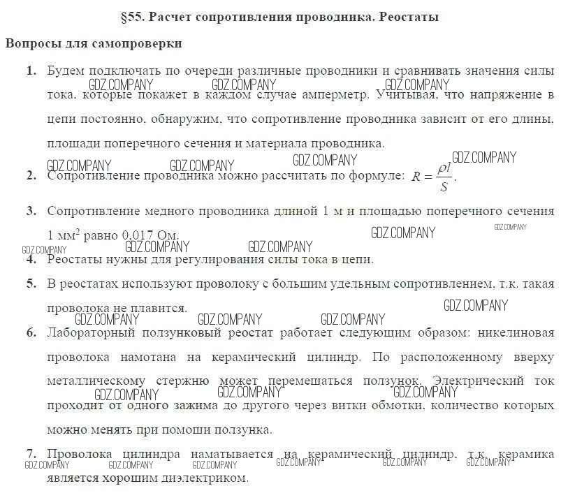 Здесь готовые ответы по Физике за 8 (восьмой) класс от Пурышева, Важеевская Учебник Вертикаль (издательство: Дрофа от 2017 г.) № § 55. Расчет сопротивления проводника. Реостаты