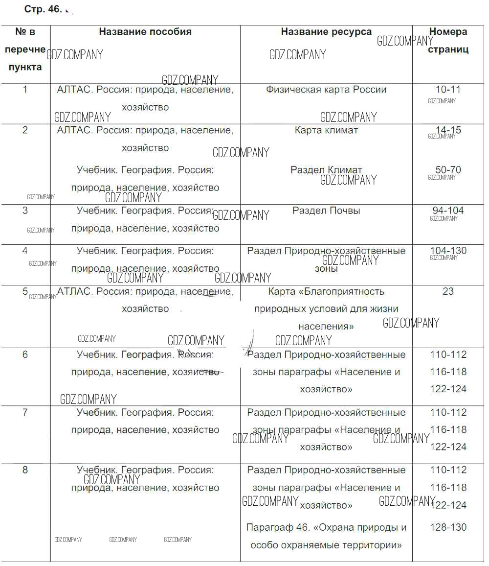 Здесь готовые ответы по Географии за 8 (восьмой) класс от Ходова Тетрадь-практикум Сферы (издательство: Просвещение от 2016 г.) № 46