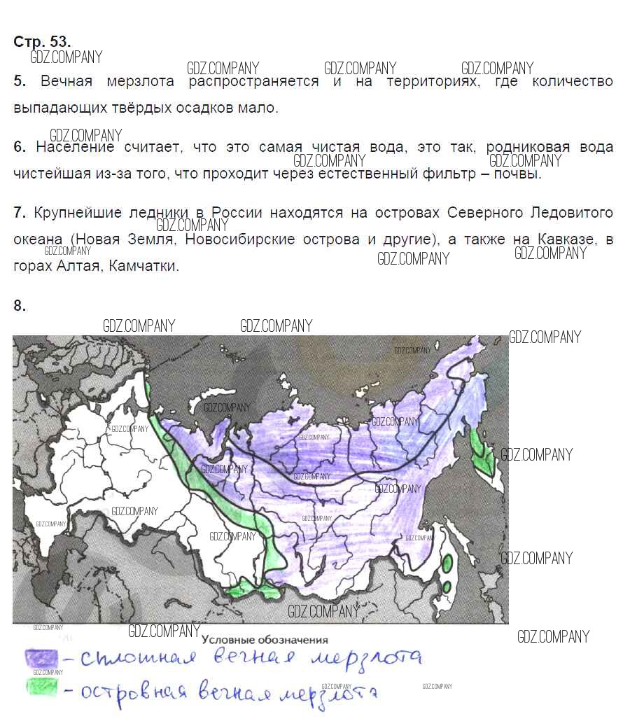 Здесь готовые ответы по Географии за 8 (восьмой) класс от Ким, Марченко, Низовцев Рабочая тетрадь УМК (издательство: Дрофа от 2016 г.) № 53