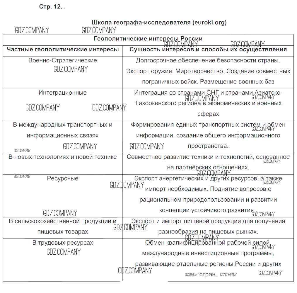 Здесь готовые ответы по Географии за 8 (восьмой) класс от Пятунин, Таможняя Рабочая тетрадь Алгоритм успеха (издательство: Вентана-граф от 2017 г.) № 12