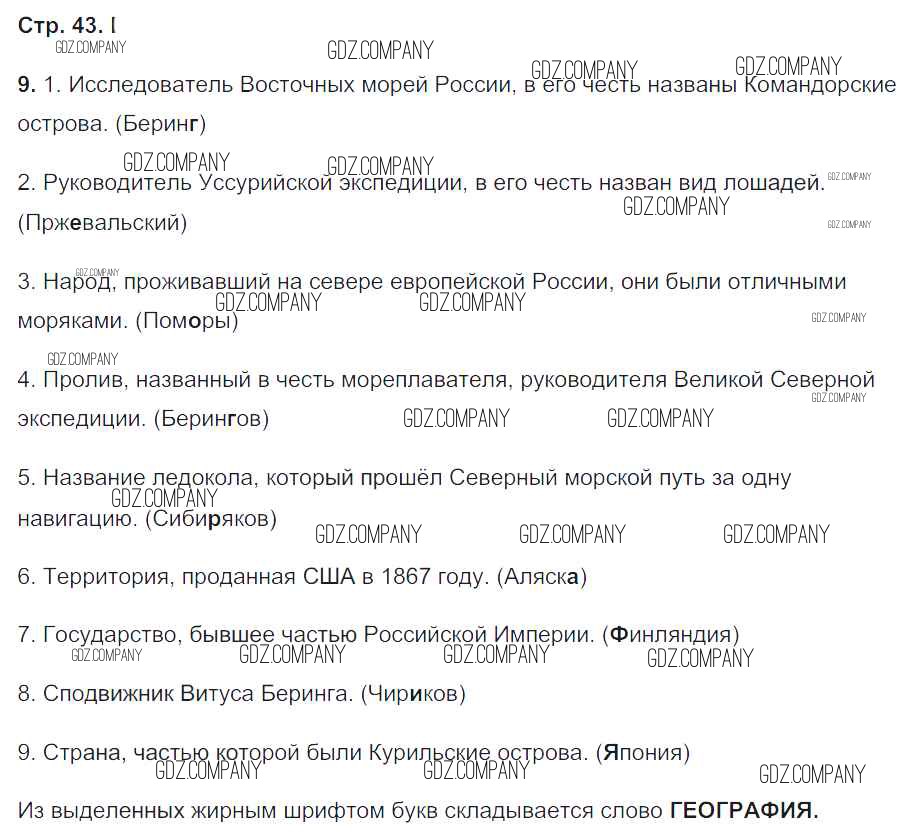 Здесь готовые ответы по Географии за 8 (восьмой) класс от Пятунин, Таможняя Рабочая тетрадь Алгоритм успеха (издательство: Вентана-граф от 2017 г.) № 43