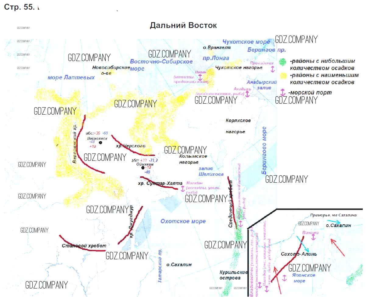 Здесь готовые ответы по Географии за 8 (восьмой) класс от Сиротин Рабочая тетрадь (издательство: Дрофа от 2020 г.) № 55