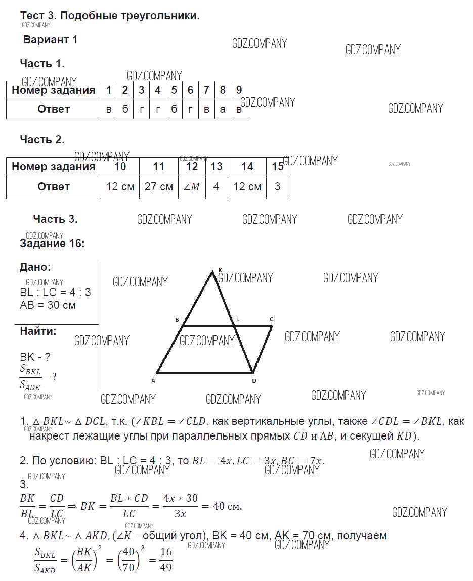 глава 3. подобные треугольники / вариант №1