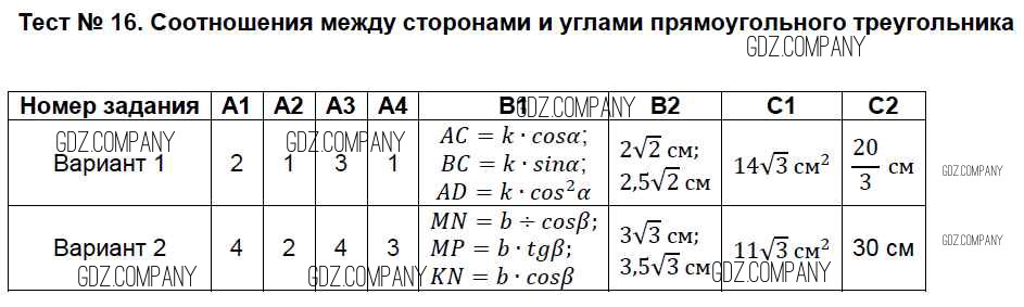 тест / тест №16. Соотношения между сторонами и углами прямоугольного треугольника