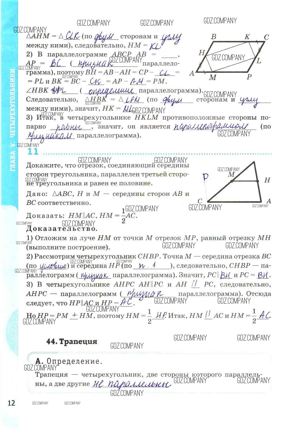 Здесь готовые ответы по Геометрии за 8 (восьмой) класс от Глазков, Камаев Рабочая тетрадь УМК (издательство: Экзамен от 2017 г.) № стр. 12