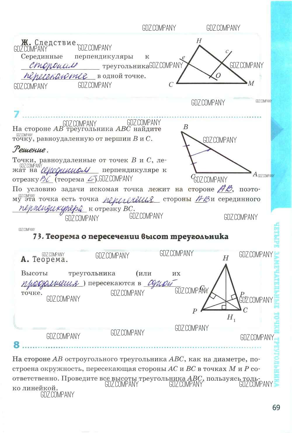 Здесь готовые ответы по Геометрии за 8 (восьмой) класс от Глазков, Камаев Рабочая тетрадь УМК (издательство: Экзамен от 2017 г.) № стр. 69