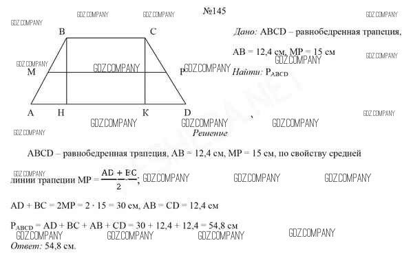 Здесь готовые ответы по Геометрии за 8 (восьмой) класс от Казаков Учебник (издательство: Народная асвета от 2018 г.) № 145