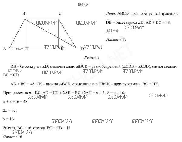 Здесь готовые ответы по Геометрии за 8 (восьмой) класс от Казаков Учебник (издательство: Народная асвета от 2018 г.) № 149