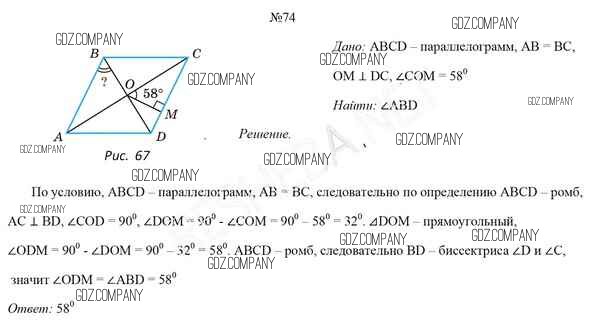 Здесь готовые ответы по Геометрии за 8 (восьмой) класс от Казаков Учебник (издательство: Народная асвета от 2018 г.) № 74