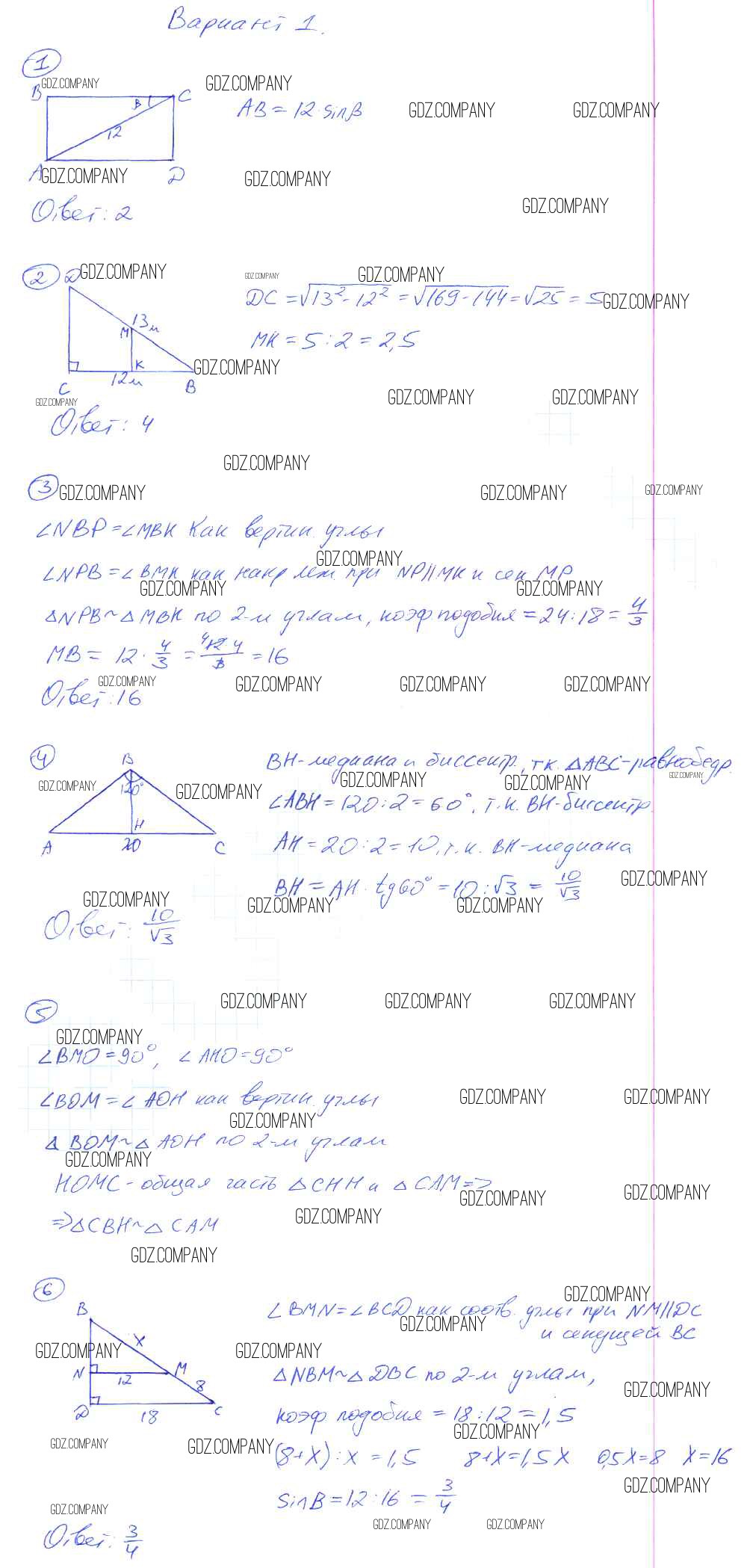 кр-3. Подобные треугольники / вариант №1