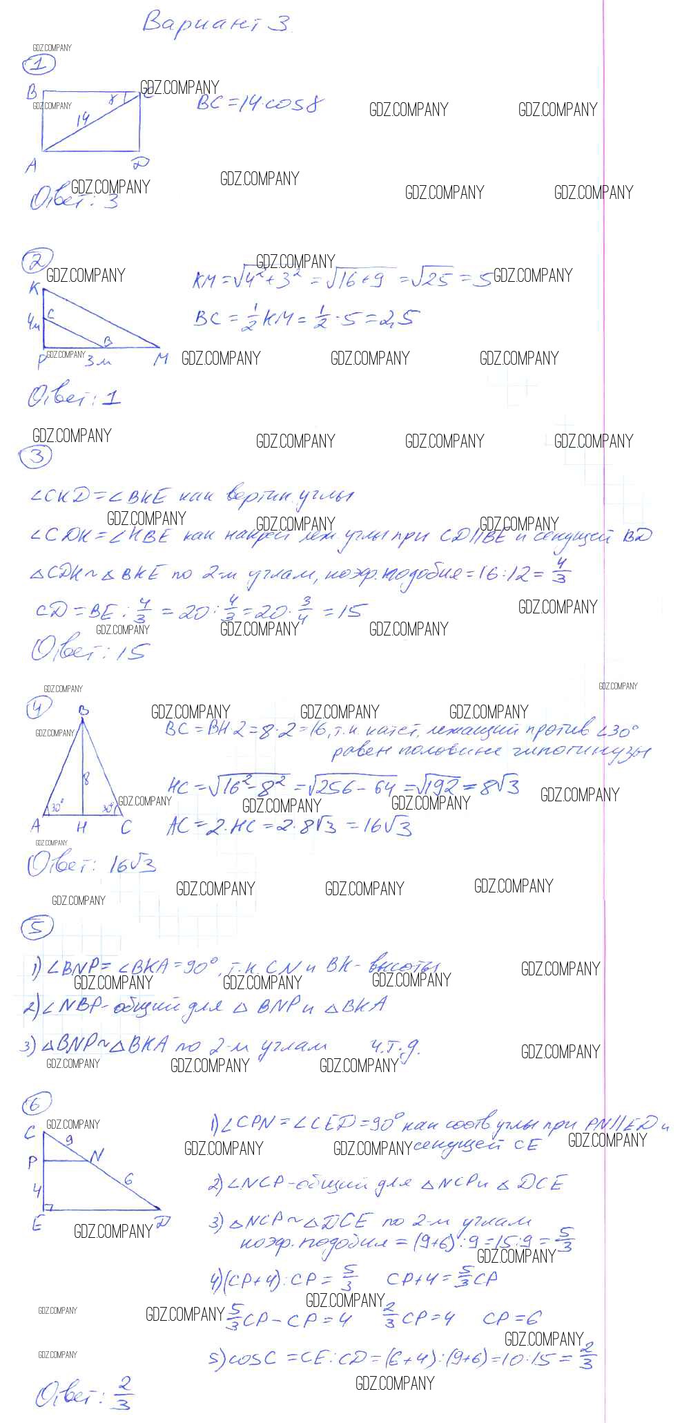 кр-3. Подобные треугольники / вариант №3