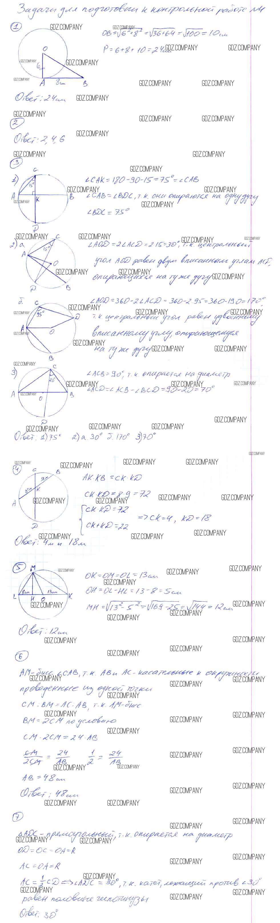 кр-4. Окружность / задачи для подготовки к контрольной работе