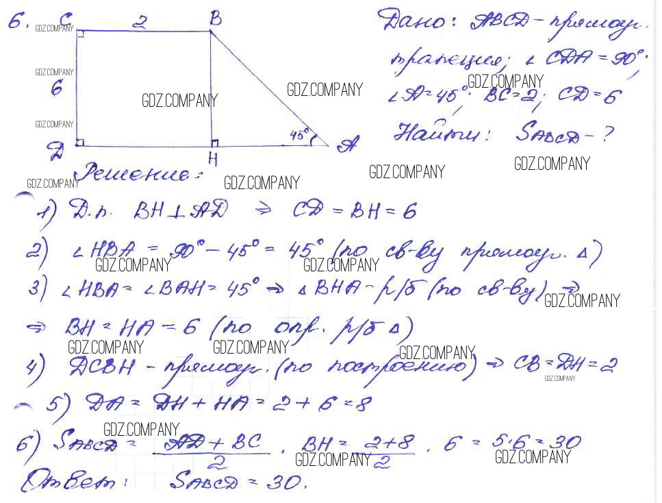 Здесь готовые ответы по Геометрии за 8 (восьмой) класс от Зив, Мейлер Дидактические материалы (издательство: Просвещение от 2016 г.) № 6