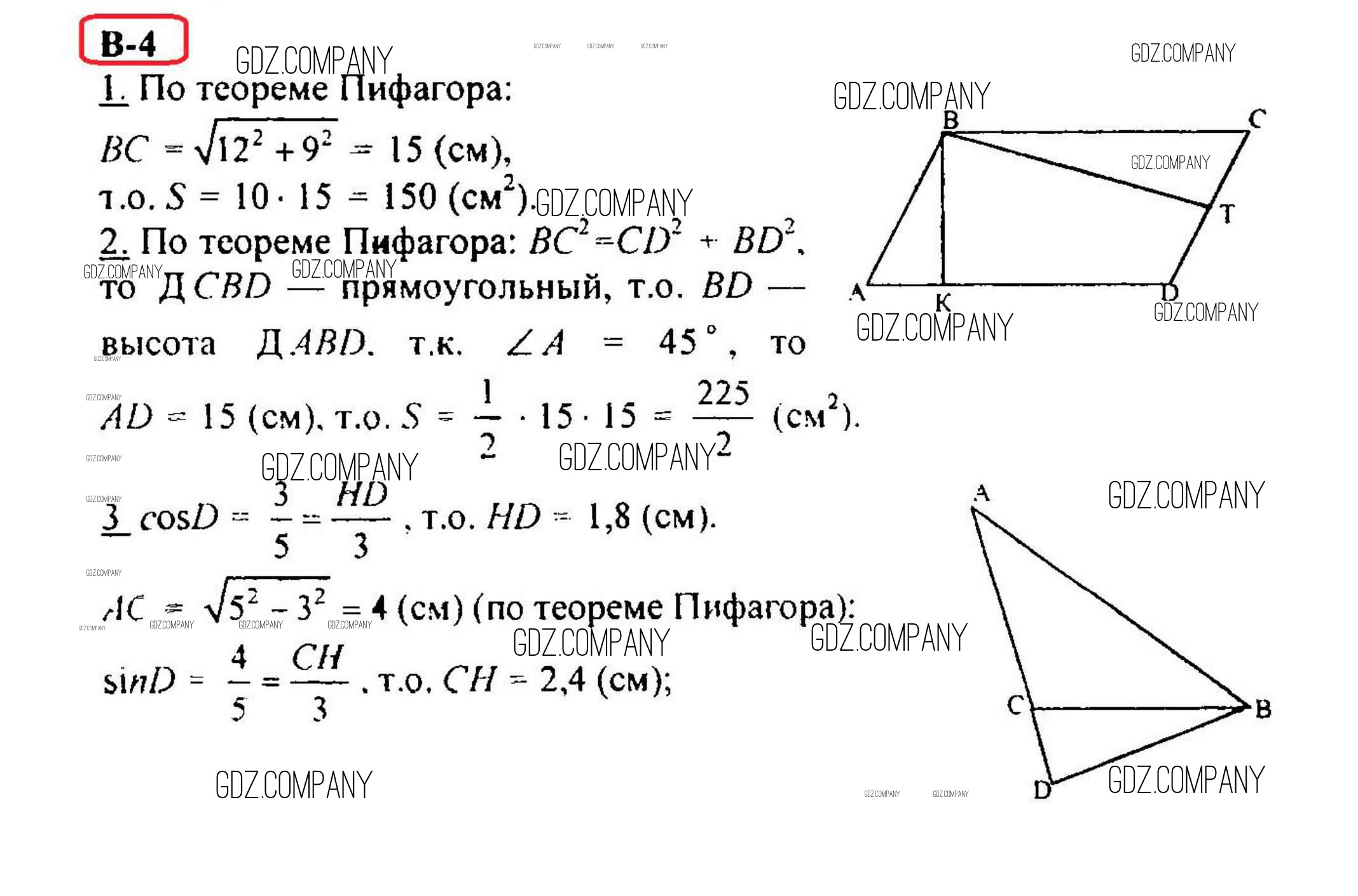 Здесь готовые ответы по Геометрии за 8 (восьмой) класс от Зив, Мейлер Дидактические материалы (издательство: Просвещение от 2016 г.) № Вариант 4