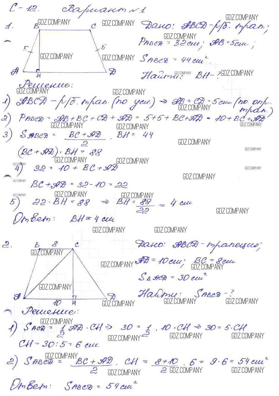 Здесь готовые ответы по Геометрии за 8 (восьмой) класс от Зив, Мейлер Дидактические материалы (издательство: Просвещение от 2016 г.) № вариант-1