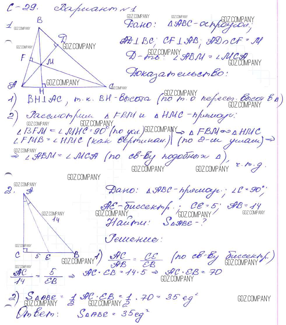 Здесь готовые ответы по Геометрии за 8 (восьмой) класс от Зив, Мейлер Дидактические материалы (издательство: Просвещение от 2016 г.) № вариант-1