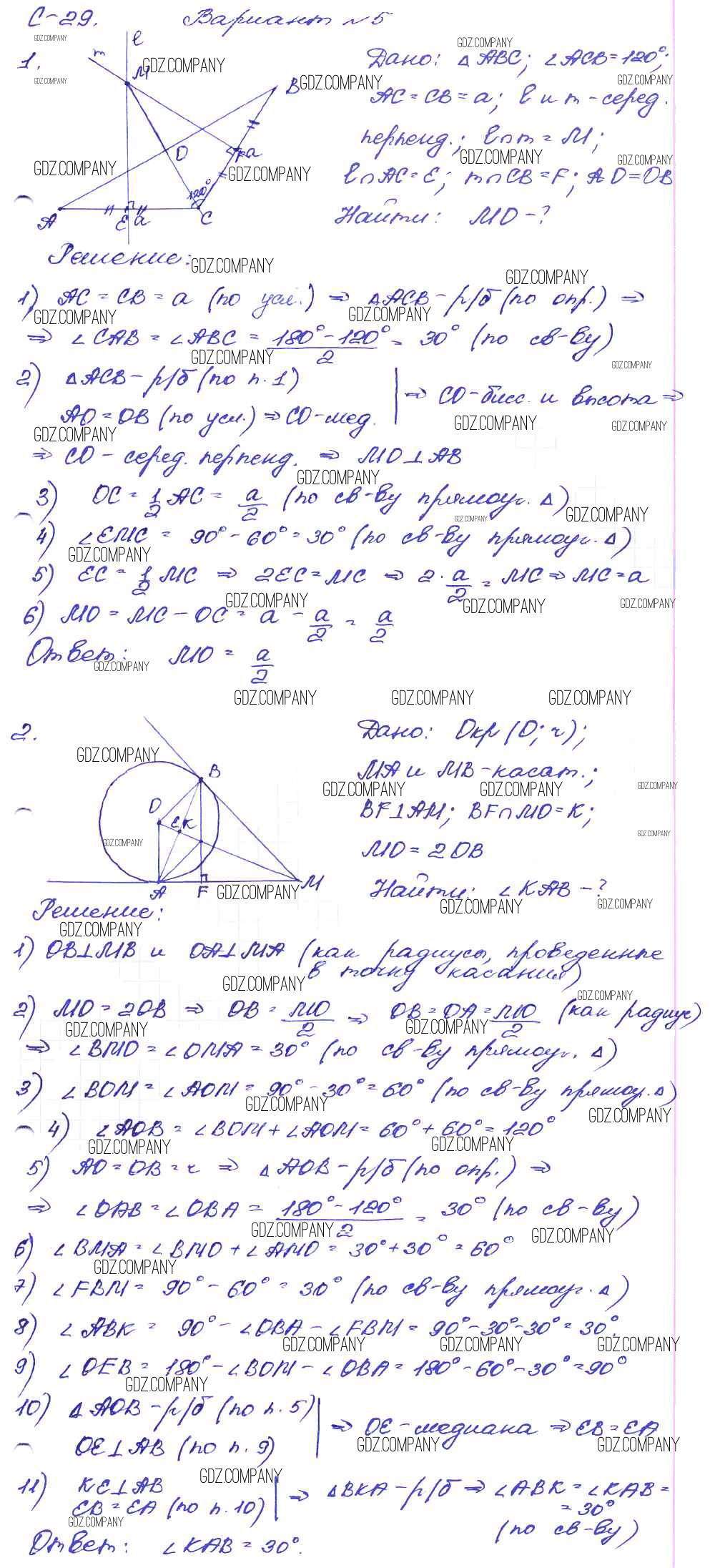 Здесь готовые ответы по Геометрии за 8 (восьмой) класс от Зив, Мейлер Дидактические материалы (издательство: Просвещение от 2016 г.) № вариант-5