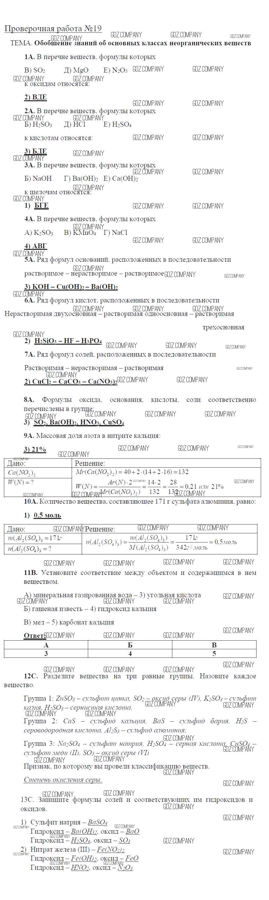 Здесь готовые ответы по Химии за 8 (восьмой) класс от Габриелян, Купцова Тетрадь для оценки качества знаний Вертикаль (издательство: Дрофа от 2013 г.) № 19