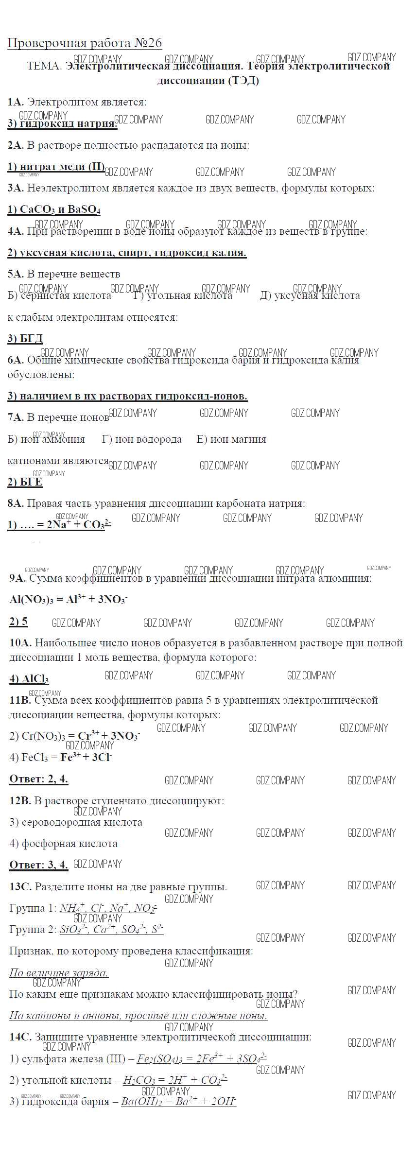Здесь готовые ответы по Химии за 8 (восьмой) класс от Габриелян, Купцова Тетрадь для оценки качества знаний Вертикаль (издательство: Дрофа от 2013 г.) № 26