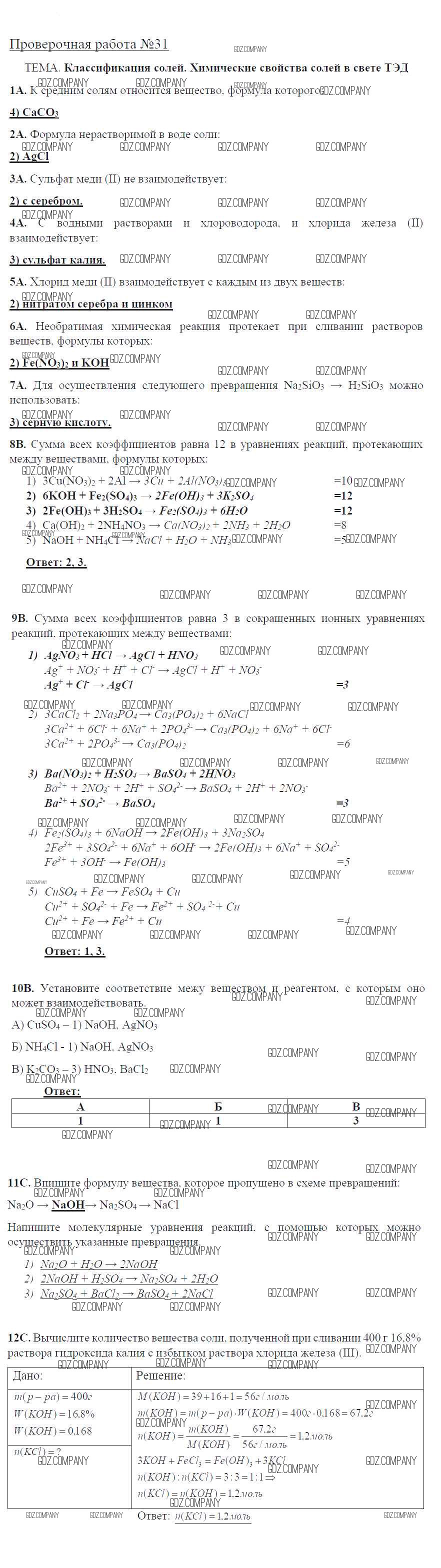 Здесь готовые ответы по Химии за 8 (восьмой) класс от Габриелян, Купцова Тетрадь для оценки качества знаний Вертикаль (издательство: Дрофа от 2013 г.) № 31