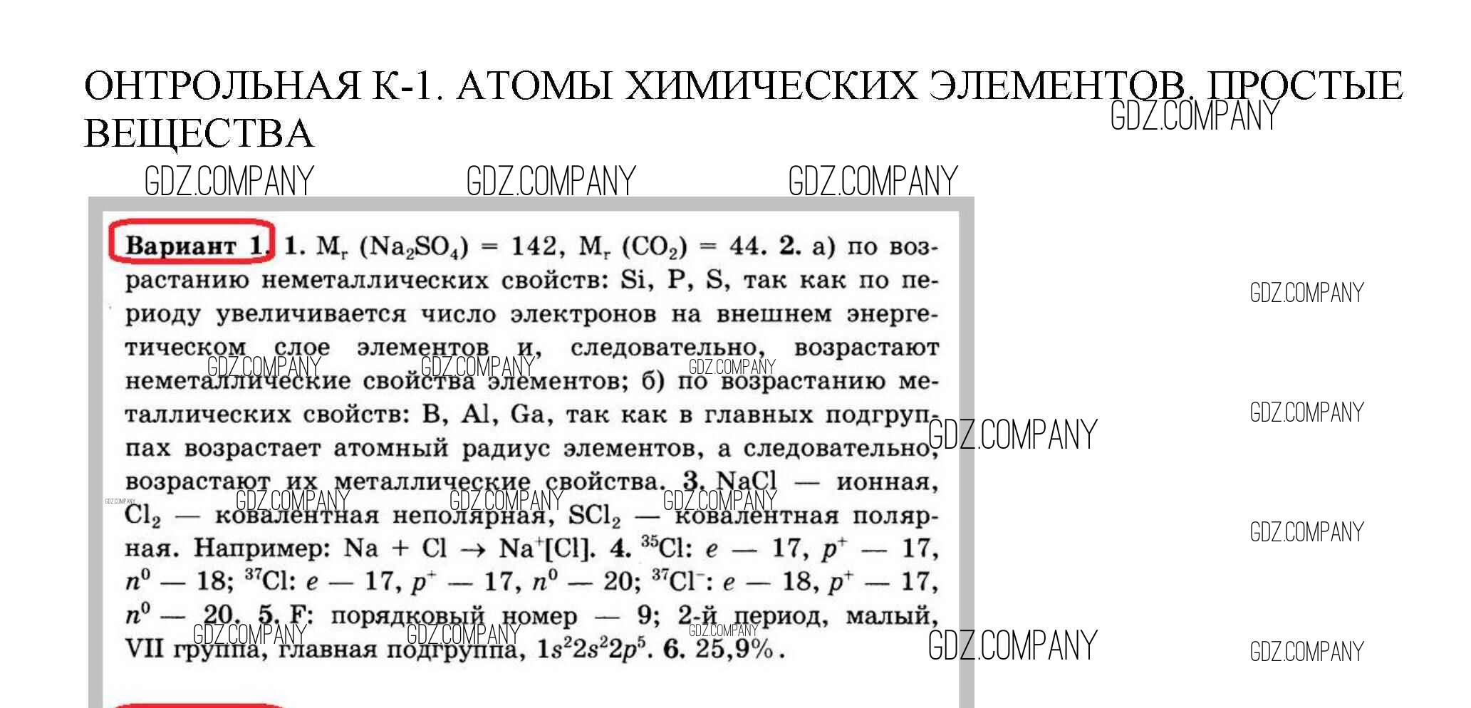 Здесь готовые ответы по Химии за 8 (восьмой) класс от Павлова Контрольные и самостоятельные работы УМК (издательство: Экзамен от 2016 г.) № 1