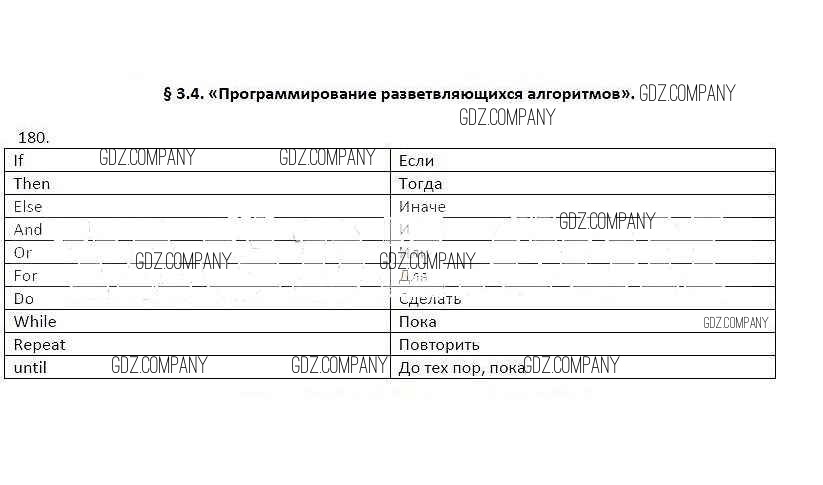 Здесь готовые ответы по Информатике за 8 (восьмой) класс от Босова Рабочая тетрадь (издательство: Бином от 2017 г.) № 180