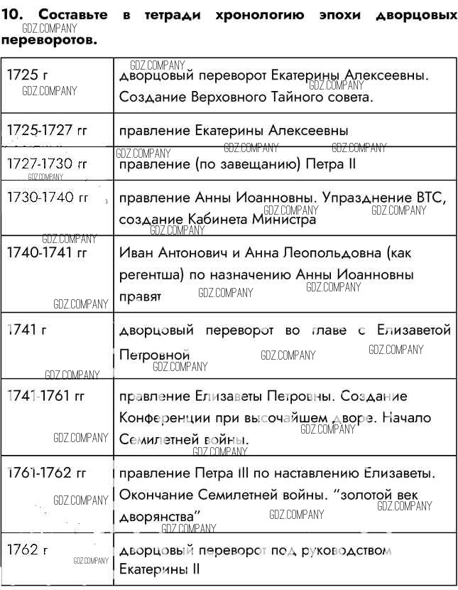 Здесь готовые ответы по Истории за 8 (восьмой) класс от Арсентьев, Курукин, Данилов Учебник (издательство: Просвещение от 2016 г.) № 10