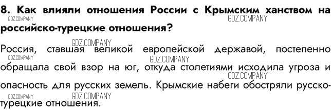 Здесь готовые ответы по Истории за 8 (восьмой) класс от Арсентьев, Курукин, Данилов Учебник (издательство: Просвещение от 2016 г.) № 8