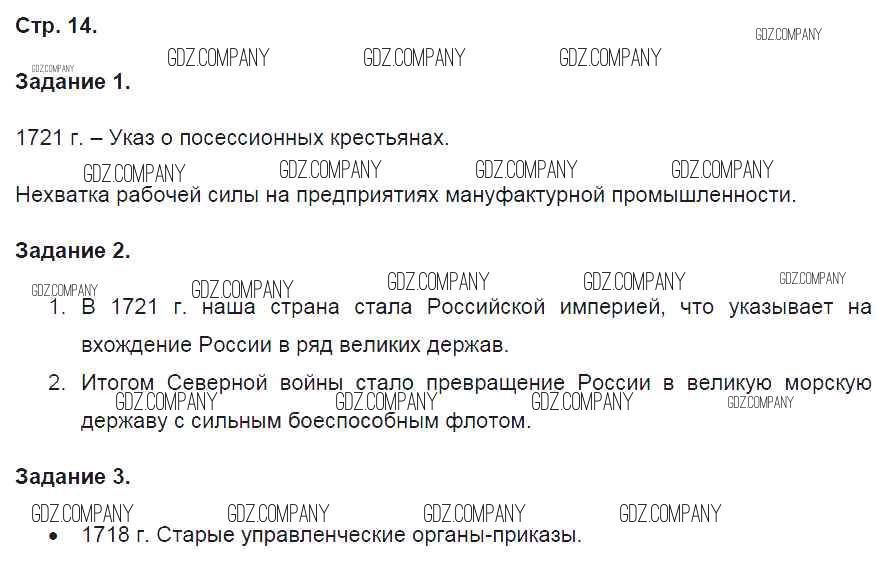 Здесь готовые ответы по Истории за 8 (восьмой) класс от Артасов Контрольные работы УМК (издательство: Просвещение от 2016 г.) № 14
