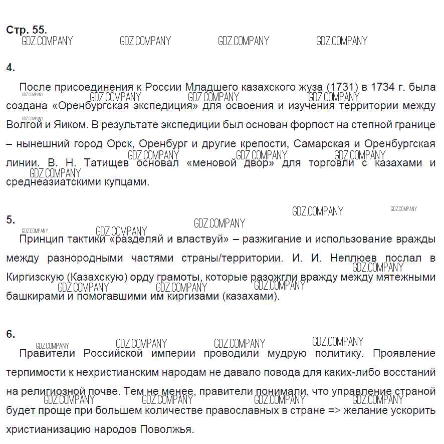 Здесь готовые ответы по Истории за 8 (восьмой) класс от Артасов, Данилов, Косулина, Соколова Рабочая тетрадь УМК (издательство: Просвещение от 2016 г.) № 55