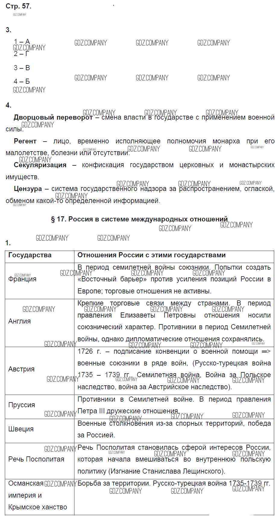 Здесь готовые ответы по Истории за 8 (восьмой) класс от Артасов, Данилов, Косулина, Соколова Рабочая тетрадь УМК (издательство: Просвещение от 2016 г.) № 57