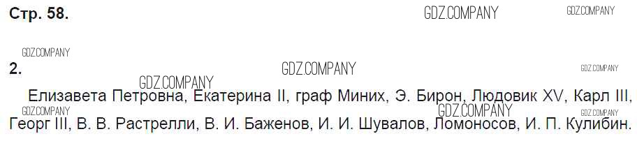 Здесь готовые ответы по Истории за 8 (восьмой) класс от Артасов, Данилов, Косулина, Соколова Рабочая тетрадь УМК (издательство: Просвещение от 2016 г.) № 58