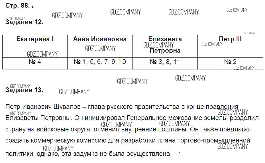 Здесь готовые ответы по Истории за 8 (восьмой) класс от Чернова Рабочая тетрадь УМК (издательство: Экзамен от 2017 г.) № 88