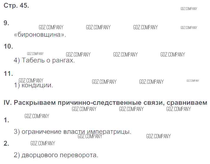 Здесь готовые ответы по Истории за 8 (восьмой) класс от Гевуркова Рабочая тетрадь УМК (издательство: Экзамен от 2018 г.) № 45