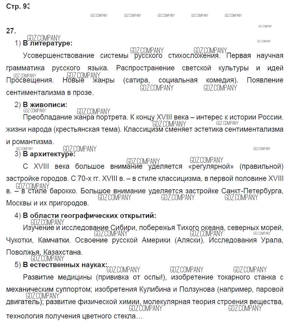 Здесь готовые ответы по Истории за 8 (восьмой) класс от Кочегаров Рабочая тетрадь Инновационная школа (издательство: Русское слово от 2017 г.) № 93