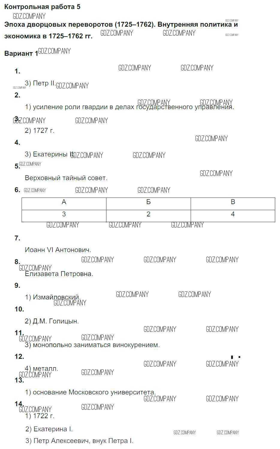Здесь готовые ответы по Истории за 8 (восьмой) класс от Соловьев Контрольные работы УМК (издательство: Экзамен от 2019 г.) № 1