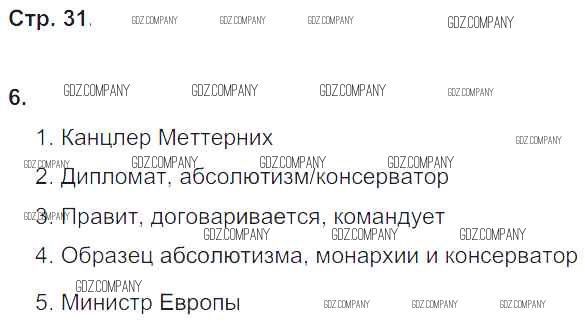 Здесь готовые ответы по Истории за 8 (восьмой) класс от Юдовская, Ванюшкина, Баранов Рабочая тетрадь УМК (издательство: Просвещение от 2017 г.) № 31