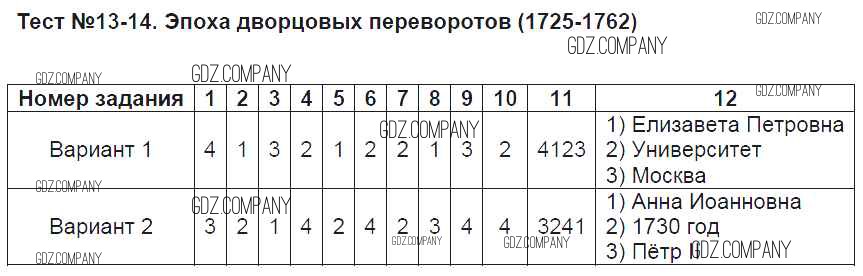 Здесь готовые ответы по Истории за 8 (восьмой) класс от Воробьёва Тесты УМК (издательство: Экзамен от 2017 г.) № 13