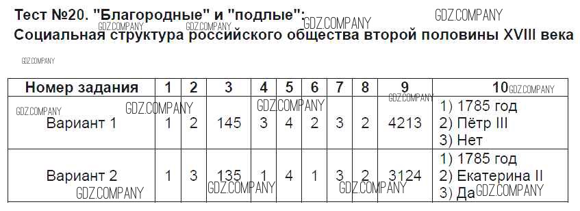 Здесь готовые ответы по Истории за 8 (восьмой) класс от Воробьёва Тесты УМК (издательство: Экзамен от 2017 г.) № 20