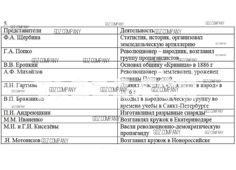 Здесь готовые ответы по Кубановедению за 8 (восьмой) класс от Гриценко Рабочая тетрадь (издательство: Перспективы образования от 2018 г.) № 5