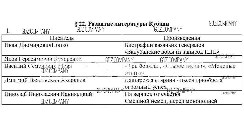 Здесь готовые ответы по Кубановедению за 8 (восьмой) класс от Гриценко Рабочая тетрадь (издательство: Перспективы образования от 2018 г.) № 1