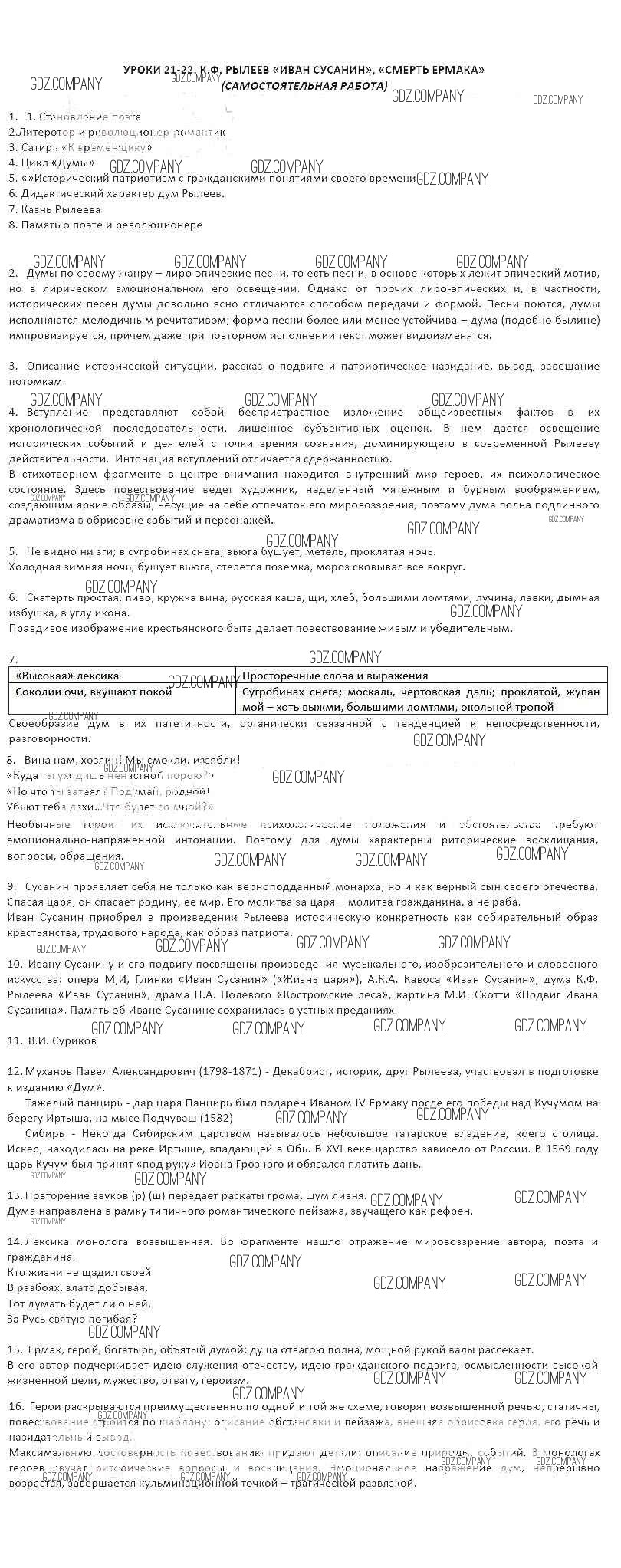 Здесь готовые ответы по Литературе за 8 (восьмой) класс от Соловьева Рабочая тетрадь Инновационная школа (издательство: Русское слово от 2016 г.) № 21