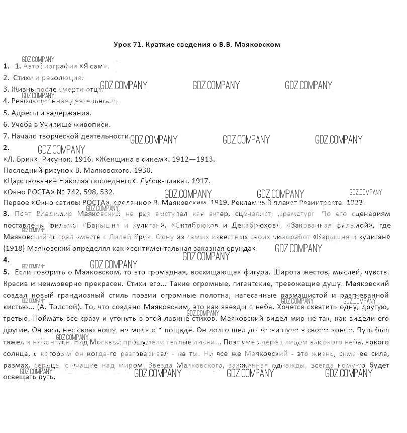 Здесь готовые ответы по Литературе за 8 (восьмой) класс от Соловьева Рабочая тетрадь Инновационная школа (издательство: Русское слово от 2016 г.) № 71