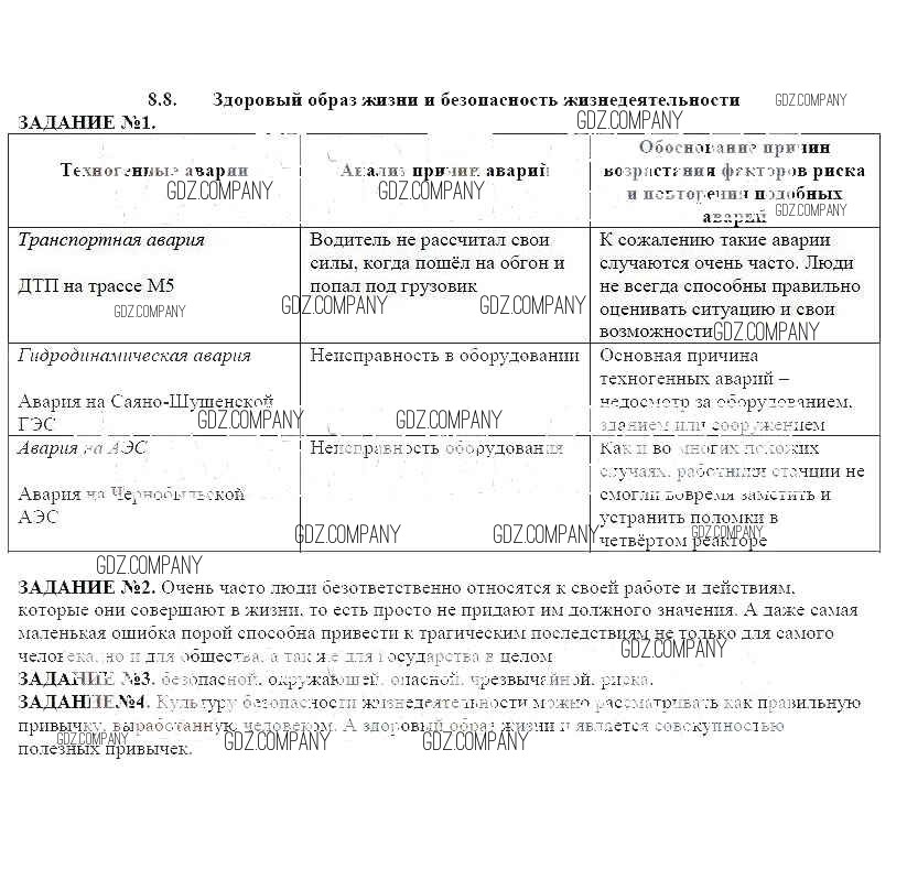 Здесь готовые ответы по ОБЖ за 8 (восьмой) класс от Смирнов, Хренников, Маслов Рабочая тетрадь (издательство: Просвещение от 2013 г.) № 8.8