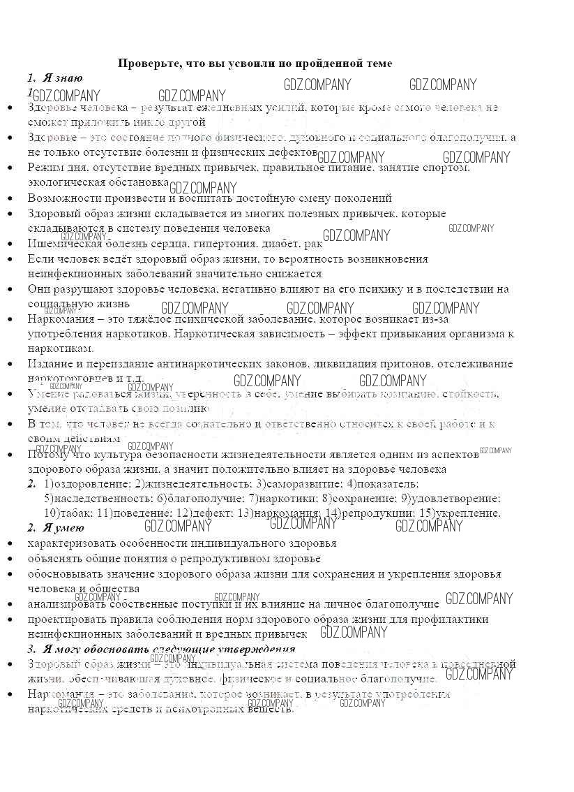 Здесь готовые ответы по ОБЖ за 8 (восьмой) класс от Смирнов, Хренников, Маслов Рабочая тетрадь (издательство: Просвещение от 2013 г.) № Проверьте свои знания