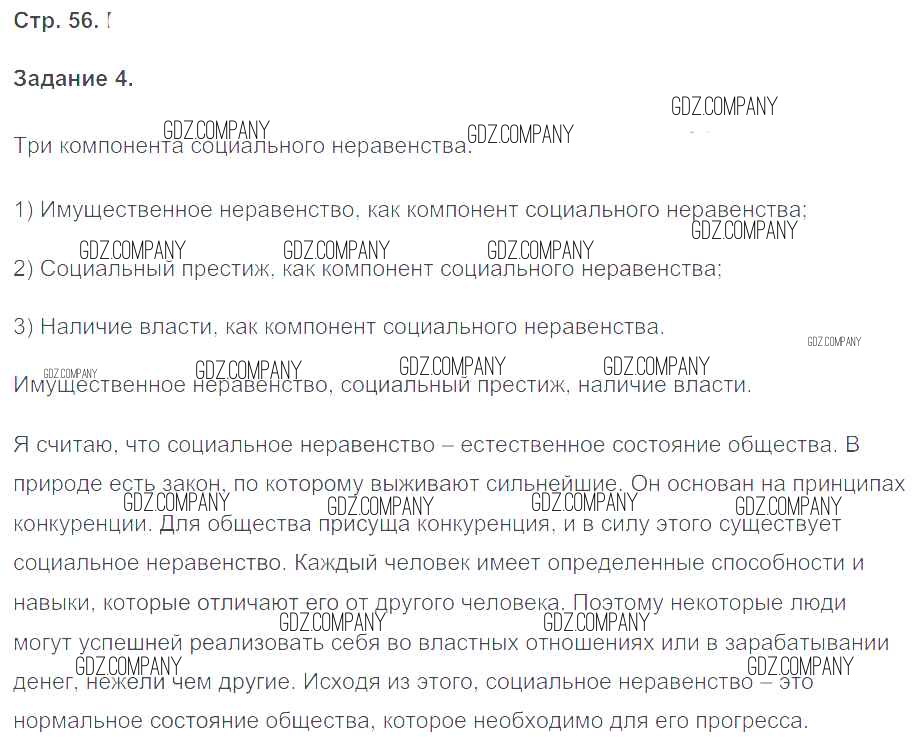 Здесь готовые ответы по Обществознанию за 8 (восьмой) класс от Митькин Рабочая тетрадь УМК (издательство: Экзамен от 2017 г.) № 56