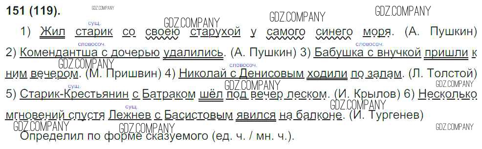 Здесь готовые ответы по Русскому языку за 8 (восьмой) класс от Бархударов, Крючков, Максимов Учебник (издательство: Просвещение от 2018 г.) № 151