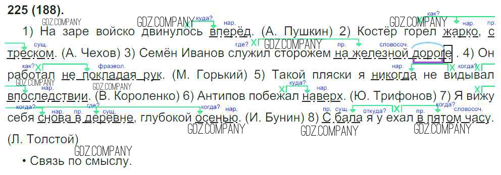 Здесь готовые ответы по Русскому языку за 8 (восьмой) класс от Бархударов, Крючков, Максимов Учебник (издательство: Просвещение от 2018 г.) № 225
