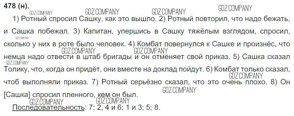 Здесь готовые ответы по Русскому языку за 8 (восьмой) класс от Бархударов, Крючков, Максимов Учебник (издательство: Просвещение от 2018 г.) № 478